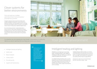The document summarizes the services provided by Chris Lewis, including intelligent home automation systems for heating, lighting, audio/video, and security. They aim to create customized smart home solutions that enhance users' lifestyles and control all systems from intuitive touchscreens or mobile devices. Client testimonials praise Chris Lewis' expertise, flexibility, and ability to develop long-term client relationships.