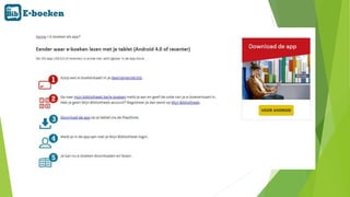 op de eigen tablet of smartphone. Binnen de muren van de bib zijn alle e-boeken uit dit project