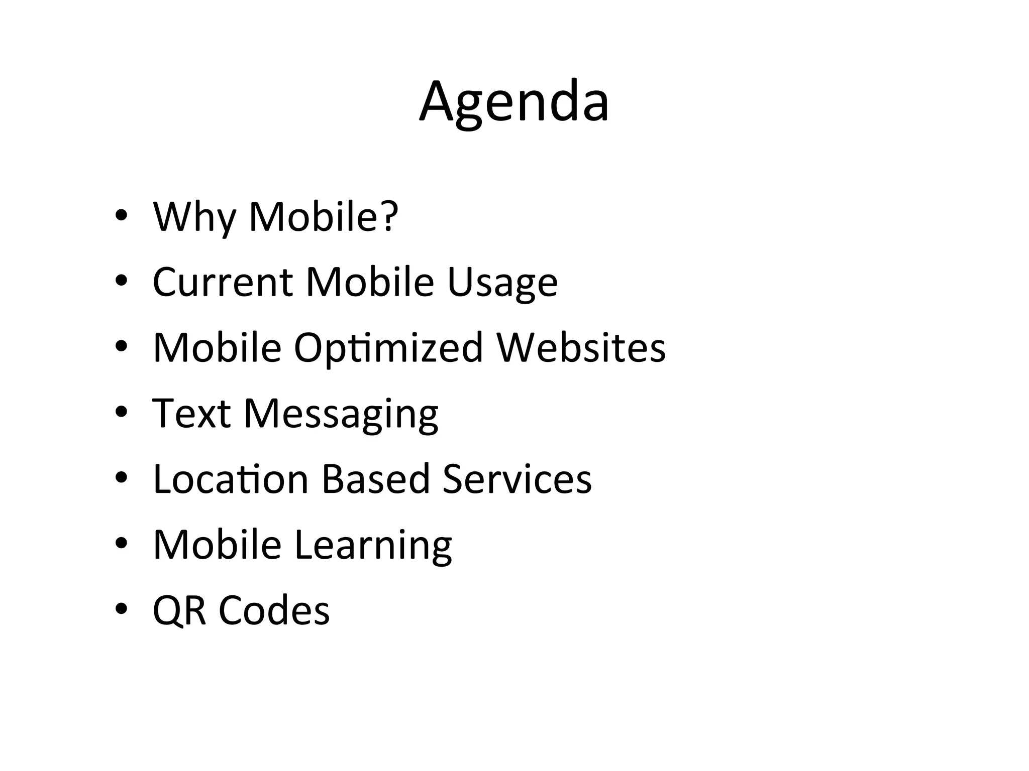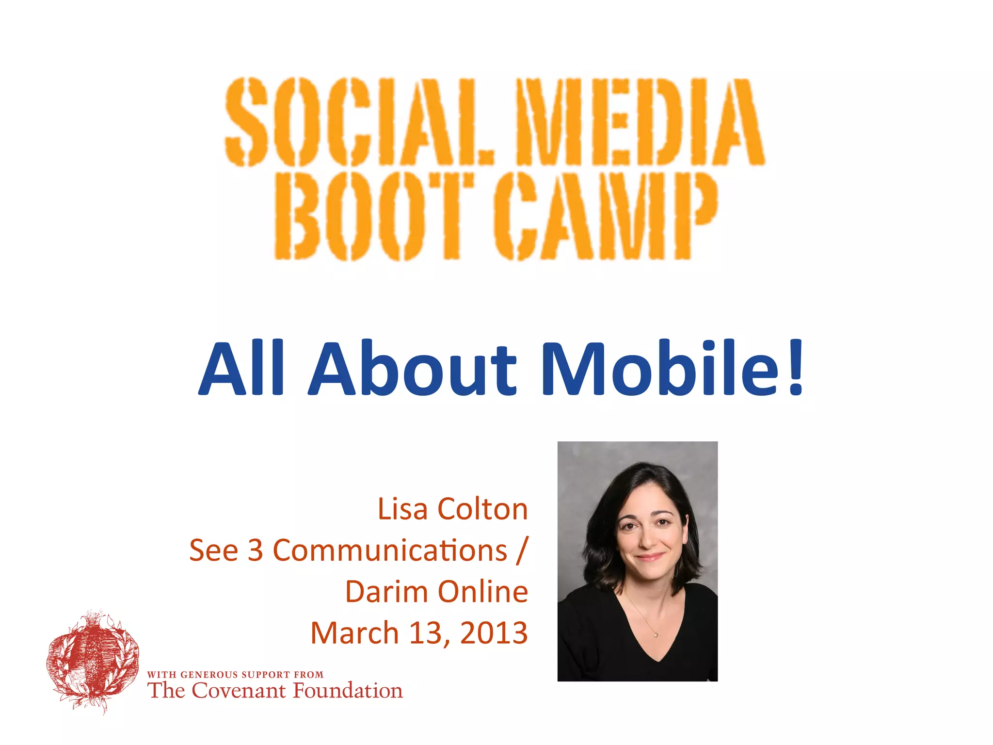 The document discusses the increasing prevalence of mobile technology, stating that smartphones will comprise over half of mobile usage in 2013 and that mobile devices will surpass PCs as the primary tools for web access. It highlights various mobile trends, such as location-based services, mobile learning, and the use of QR codes, along with their applications in educational contexts. Additionally, it provides a checklist for organizations to evaluate their mobile readiness and encourages awareness of mobile integration in digital citizenship education.