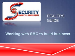 This document outlines how SMC can help dealers build their business through education, demonstrations, relationships, leading technology, and experience. SMC provides training on industry standards, programs, and products to help dealers learn. They assist with in-person demonstrations to help close sales by showing customers the benefits of the products. SMC aims to develop long-term partnerships with dealers and protect their projects through registration. Representatives have extensive industry experience and knowledge of advanced surveillance, access control, and fire systems products.