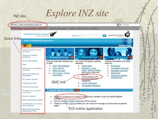 This document provides a step-by-step guide to applying for skilled migrant status in New Zealand. It outlines the application fees, required documents for the Invitation to Apply (ITA) stage, and requirements for obtaining a work to residence permit within three months of a job offer. These include showing proof of sufficient funds to support oneself and family for at least the first three months in New Zealand.