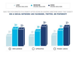 The document discusses the limitations of social media analytics, particularly in relation to understanding donor behaviors and the effectiveness of social channels in fundraising. It highlights that while active social media users can be valuable for charities, there is a need to engage and encourage them to promote charitable donations. The insights suggest missing opportunities if organizations do not leverage social media to urge donor participation and fundraising.