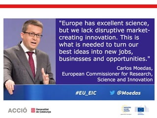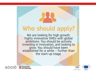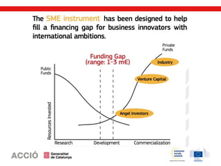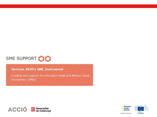 L’SME Instrument és un programa de la Comissió Europea emmarcat en l’Horitzó 2020, que ofereix subvencions a fons perdut a les pimes amb projectes innovadors de gran impacte i amb un alt potencial de creixement internacional. El programa compta amb un pressupost de 3.000 M€ per al període 2014-2020, repartit en convocatòries periòdiques que s’obren cada 3 mesos aproximadament. A diferència de la majoria de convocatòries de l’Horitzó 2020, l’SME Instrument permet a les pimes presentar els seus propis projectes i fer-ho de manera individual, sense necessitat de formar consorci.