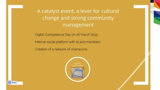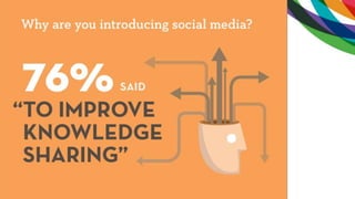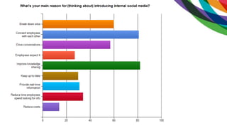 The document appears to be from a Social Media Week event focused on using internal social media. It includes polls showing growing adoption rates of internal social media over time. It also includes summaries of presentations on various topics like the benefits of internal social networks, employee engagement through social media, and social media measurement. Case studies were also presented from organizations like Unilever on how they use social media internally for collaboration and knowledge sharing.
