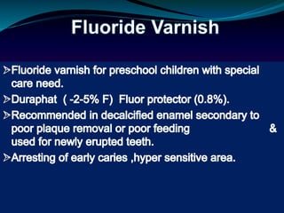 1) Early childhood caries (ECC) is defined as the presence of one or more decayed, missing, or filled tooth surfaces in primary teeth in children under 71 months of age.