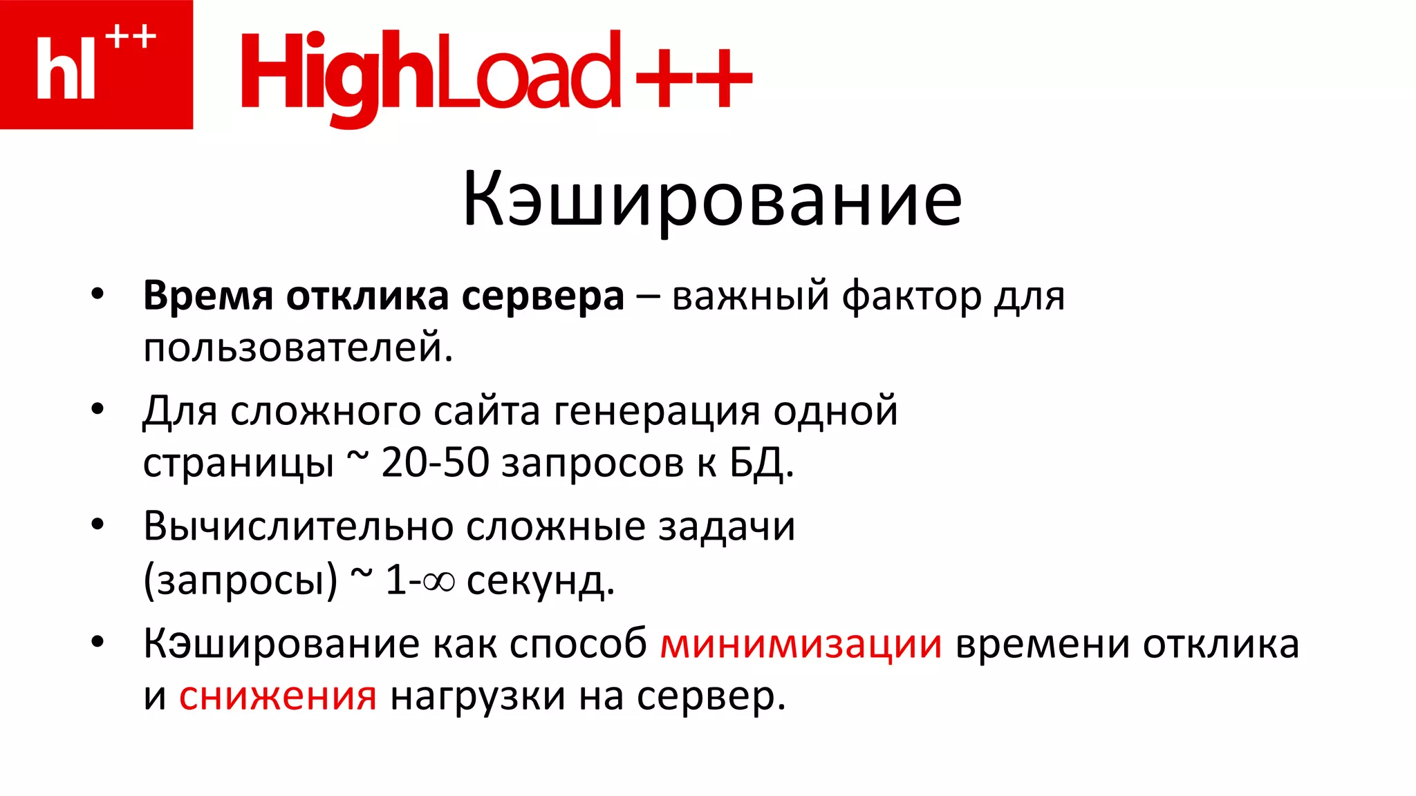 Документ освещает методику кэширования данных с использованием memcached для сокращения времени отклика сервера и снижения нагрузки на базу данных. Основное внимание уделено атомарности операций, кластеризации, инвалидации кэшей и управлению версиями данных. Рассматриваются также статистические методы мониторинга производительности memcached и решения для отладки.