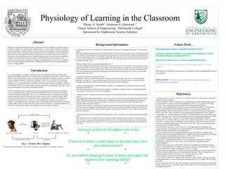 Three studies examined the relationship between mental stress, anxiety, and physiological responses during learning tasks. One study had subjects complete arithmetic problems under time pressure while measuring heart rate, finding increased heart rate in response to perceived stress. Another studied had subjects read either the Quran or another book while measuring brain activity, finding more relaxed brain waves when reading the Quran. A third analyzed previous work showing correlations between academic success and changes in measures like blood pressure, heart rate, and skin humidity during learning tasks. Together these studies provide evidence that anxiety and stress can influence physiological responses in ways that hinder the learning process.