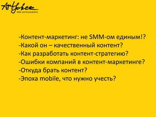 Документ посвящен стратегиям и тактикам контент-маркетинга и использования социальных сетей. Основные темы включают создание эффективного контента, разработку контент-стратегии, анализ целевой аудитории и способы увеличения вовлеченности пользователей. Также рассматриваются частые ошибки в контент-маркетинге и способы их преодоления.