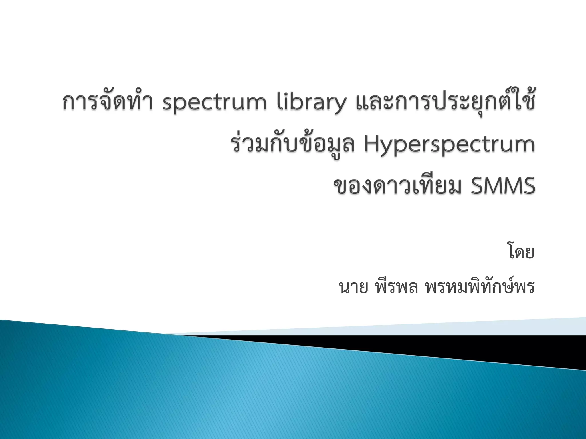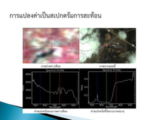 การสารวจเพื่อเก็บข้อมูลในการจัดทาสเปกตรัมไลบรารี่ การประยุกค์ใช้ภาพถ่ายดาวเทียม การนาไลบรารี่ไปประยุกต์ใช้กับเพืนที่อื่นๆ ้ รูปแบบสเปกตรัมไลบรารี่