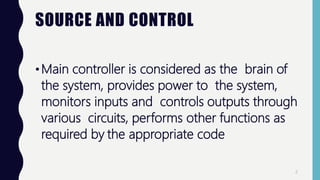 Smoke detectors come in two main types - ionization and photoelectric - that use different sensing methods to detect smoke particles. Ionization detectors detect changes in air conductivity using a radioactive source, working best for small particle fires. Photoelectric detectors use light scattering or blocking to detect particles, functioning across a variety of fire types. Smoke detectors are used in homes and buildings to detect fires early and notify occupants, being placed in recommended locations like bedrooms and hallways. While both detector types are effective, ionization models have been shown to respond fastest overall.