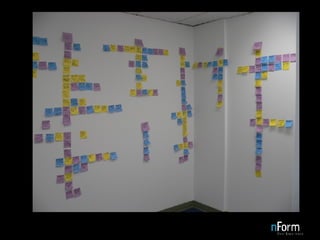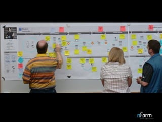 The document discusses how designers can take on more of a facilitator role to help overcome challenges in projects. It recommends that designers focus on understanding business needs through techniques like business-centered design. The presentation provides tips for facilitating workshops, such as using design tools that define problems collaboratively rather than just reviewing deliverables. It suggests principles like codesigning and surfacing agendas to help alignment.