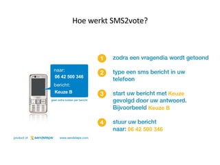 je voorkeur? woensdag 10 juni vrijdag 12 juni Stuur uw bericht met Keuze <spatie> uw keuze naar 06 42 500 346 Bijvoorbeeld: Keuze b