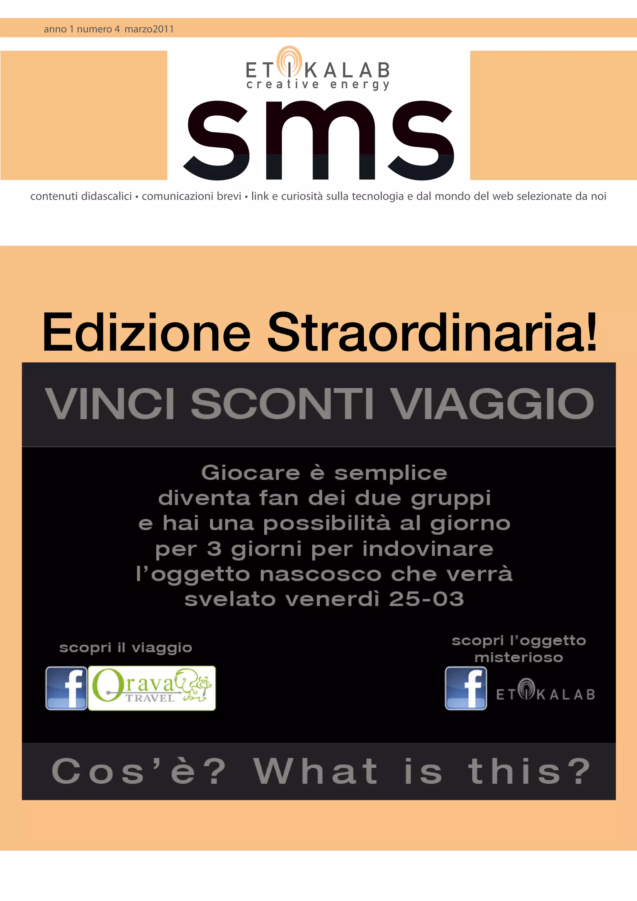 Il documento è un'edizione straordinaria di un periodico del marzo 2011, contenente comunicazioni brevi e collegamenti a curiosità sulla tecnologia e il web. Fornisce notizie selezionate e informazioni utili. È disponibile un contatto email e un link al sito web dell'editore.