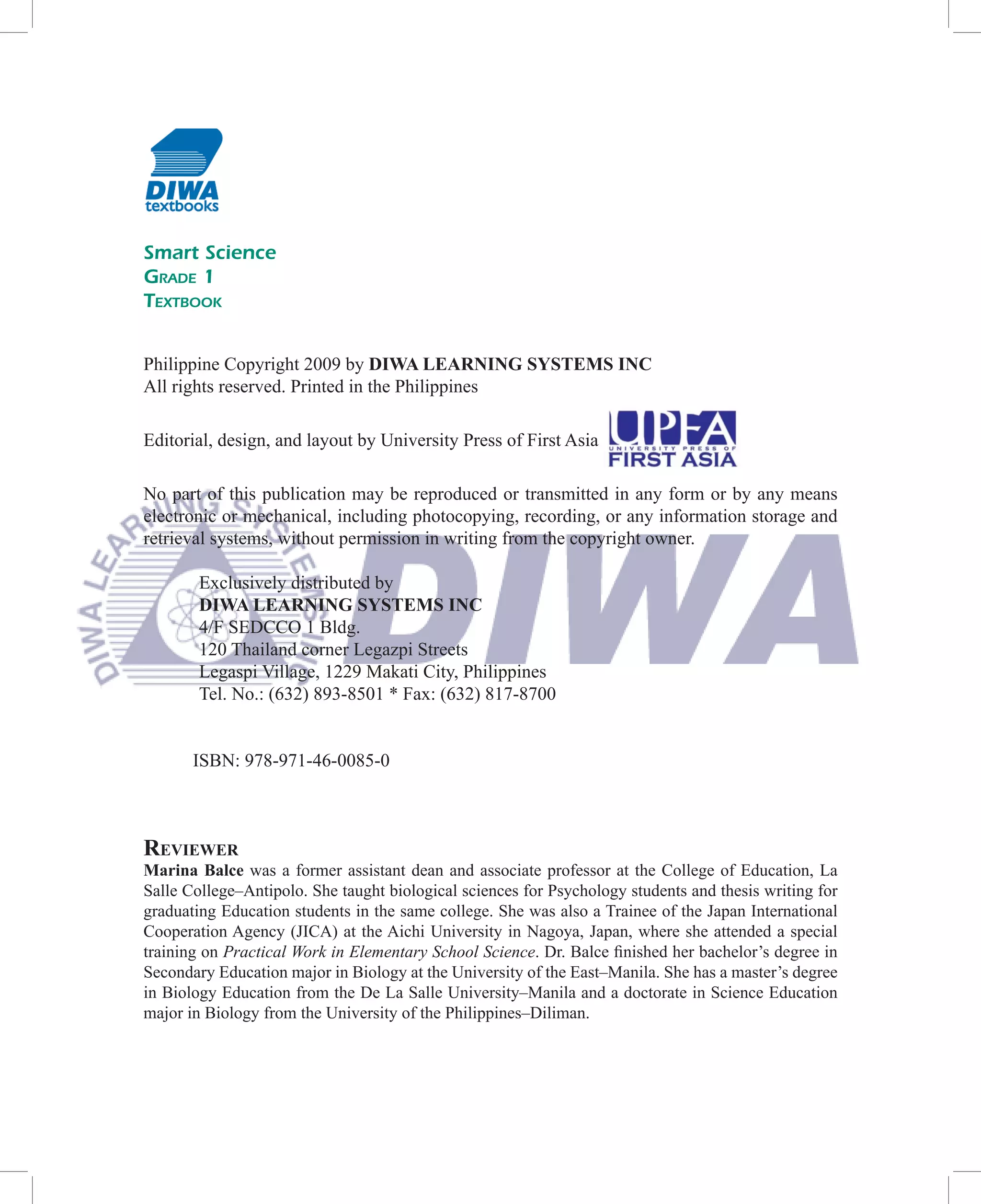 This document is the table of contents and introduction for a Grade 1 science textbook titled "Smart Science". It lists the textbook's chapters and lessons which cover topics about the human body, animals, plants, matter, energy, the Earth, and the Sun. The textbook is intended to help young learners discover answers to their questions about science concepts through learning experiences and activities. It aims to teach students how to apply science to their daily lives.