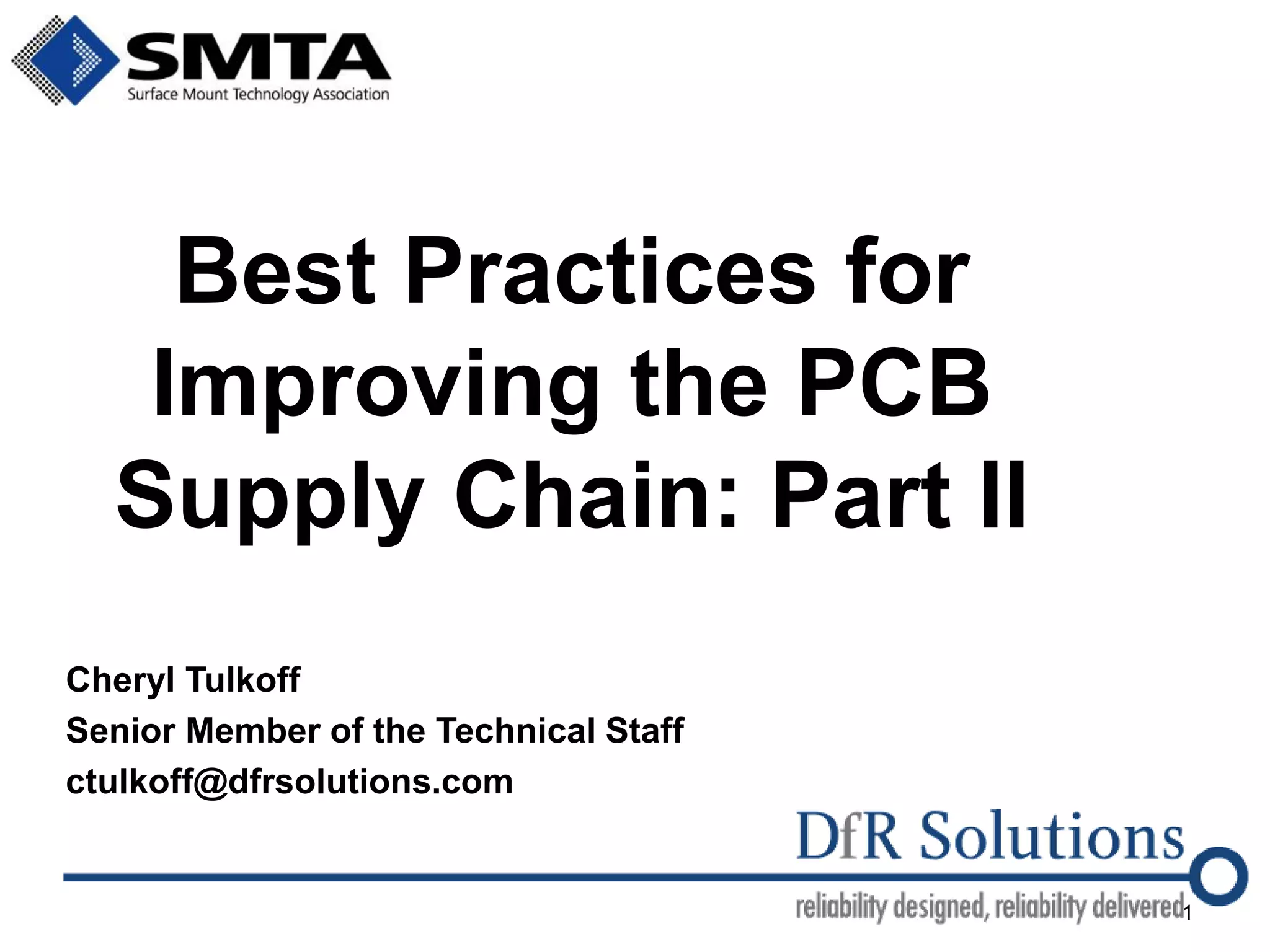 The document outlines best practices for improving the printed circuit board (PCB) supply chain, emphasizing the importance of rigorous supplier selection, qualification, and management processes. It details the formation of a PCB commodity team, supplier tiering strategies, and ongoing relationship management practices to enhance quality and reliability. Additionally, it highlights the necessity of onsite audits and continuous quality monitoring to ensure that PCBs consistently meet specified standards.