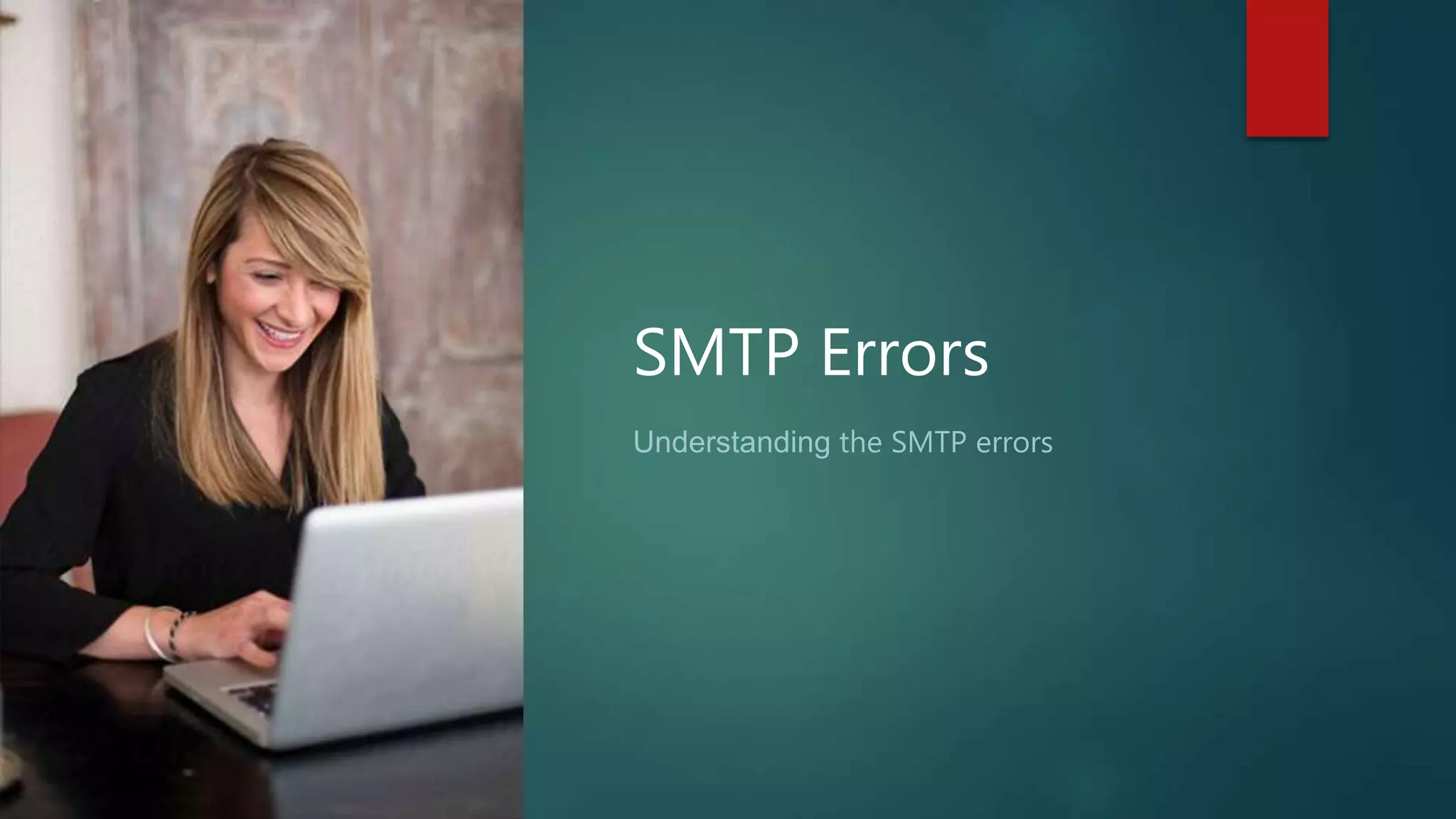 The document discusses various SMTP errors that can occur when sending emails, including authentication errors, incorrect response codes, permission errors, connection errors, and hostname resolution errors. Potential causes and solutions are provided for each error type.