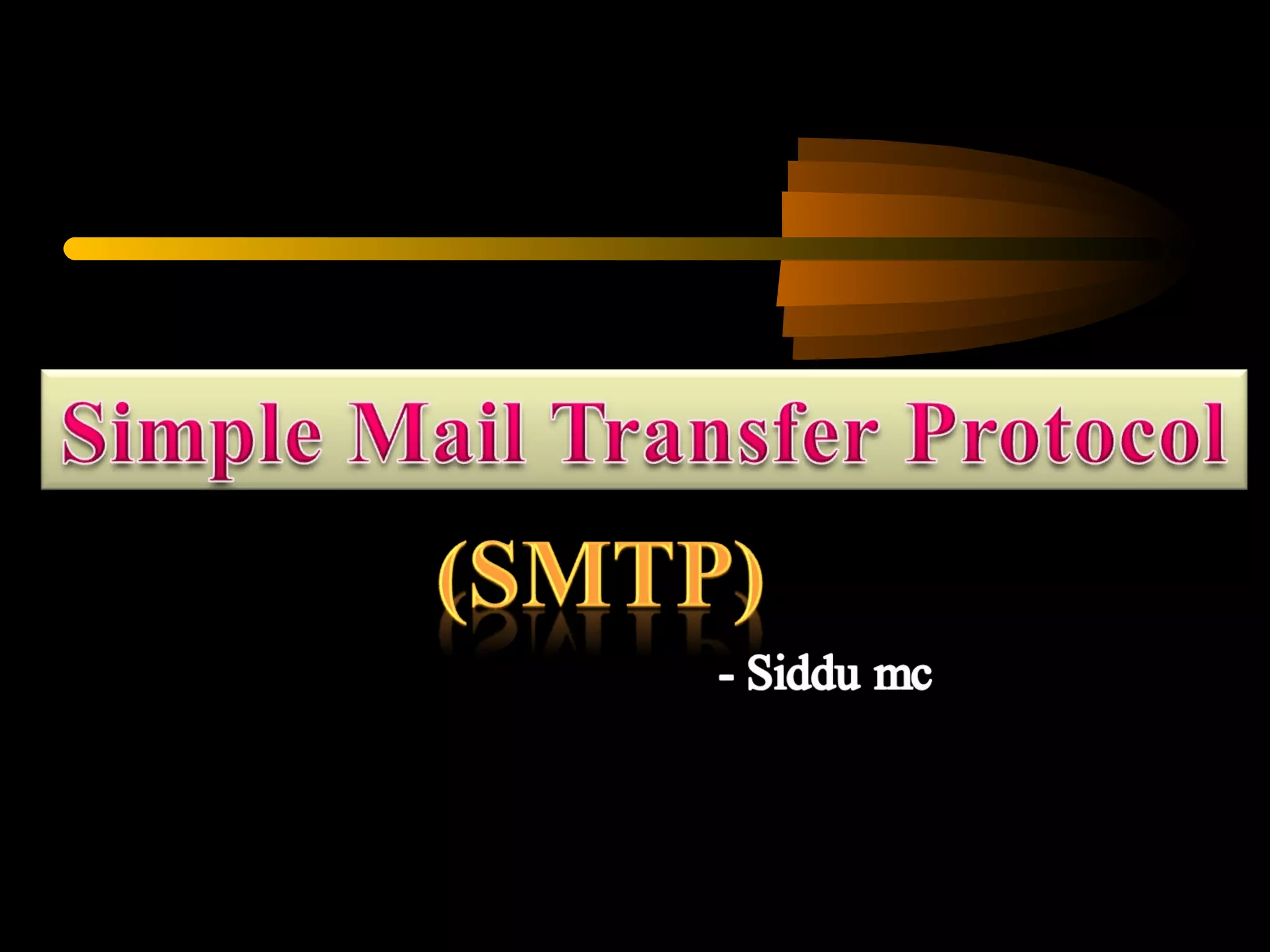 The document provides an overview of the Simple Mail Transfer Protocol (SMTP), which is a TCP/IP protocol for email exchange between computers. It describes the architecture of SMTP, including components like user agents and mail transfer agents, as well as the command-response mechanism used for message transfer. Additionally, it outlines the phases of SMTP operation, potential issues with older implementations, and the extended SMTP (ESMTP) defined to address these problems.