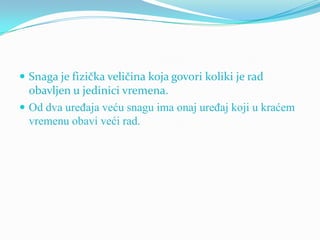Snaga lukagabud. 2. Snaga je fizička veličina koja govori koliki je rad
