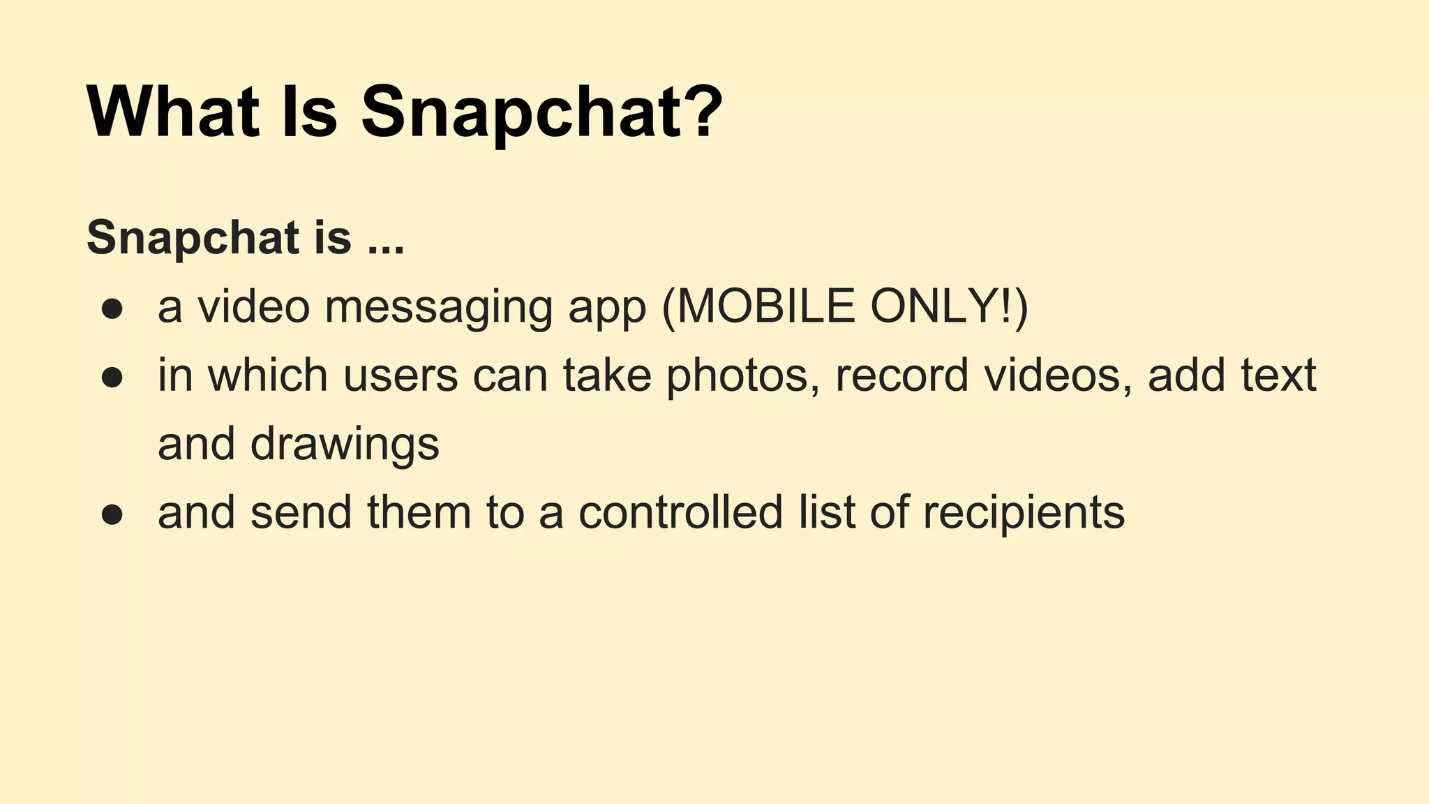 Snapchat is a mobile app that allows users to take photos, videos and draw on them before sending them to contacts, with the content disappearing after being viewed; while nearly 100 million people use Snapchat daily, sharing over 2 billion videos each day in an ephemeral and casual style; the document provides an overview of how media organizations and reporters are using Snapchat to tell visual stories from events.