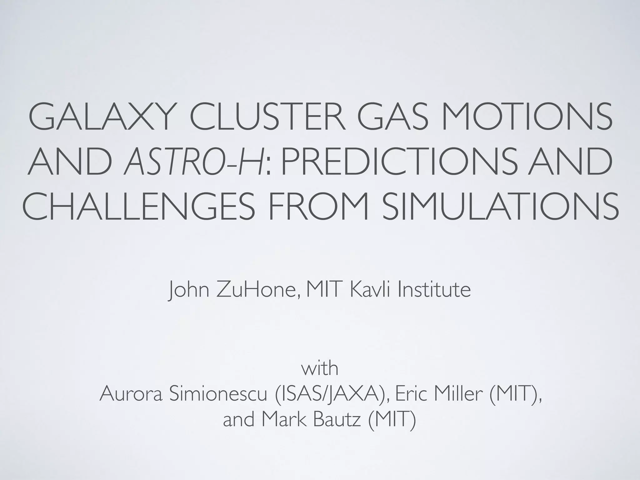 1) Astro-H observations of galaxy cluster gas motions from simulations show that the spacecraft may be able to detect sloshing gas motions of hundreds of km/s in relaxed clusters.