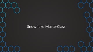 The document outlines a masterclass on Snowflake, covering topics such as data loading, architecture, performance optimization, and data sharing. It emphasizes best practices for utilizing the course effectively, including using resources, quizzes, and asking questions. Additionally, it highlights various Snowflake features like time travel, fail-safe, zero-copy cloning, and access management.