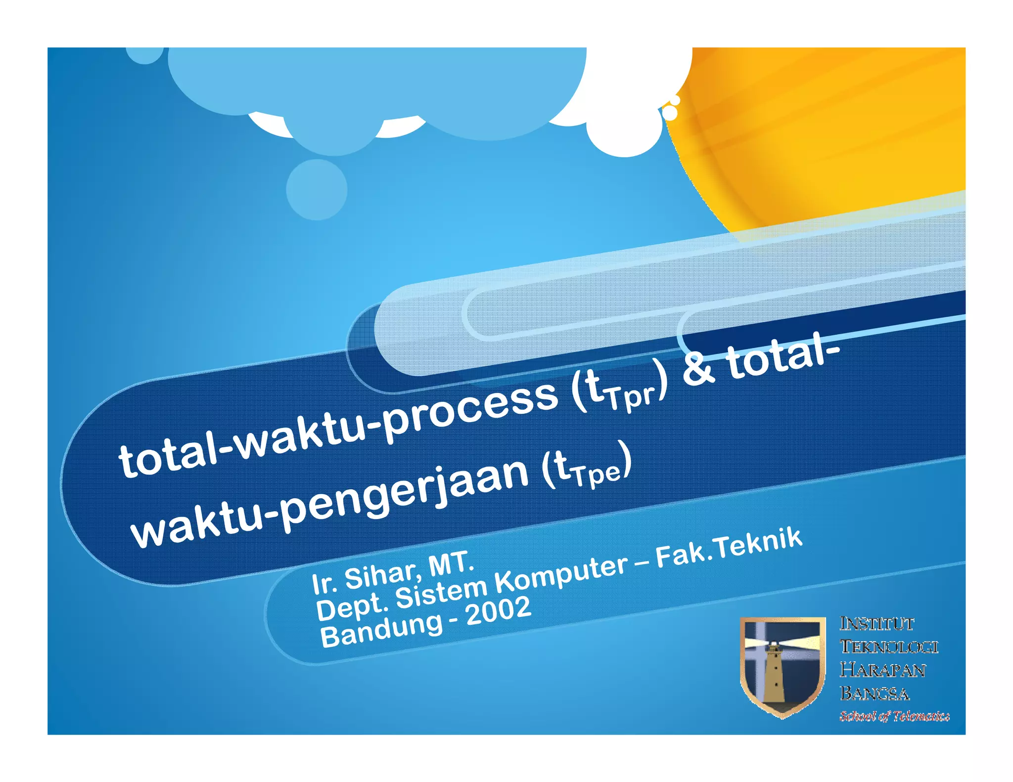 Dokumen ini membahas konsep proses dalam sistem operasi, termasuk pemrosesan, manajemen waktu, dan penghitungan total waktu proses dan waktu tunggu. Selain itu, dokumen ini mencakup beberapa referensi penting dalam bidang sistem operasi serta contoh diagram status untuk menjelaskan interaksi antara proses dan penanganan interupsi. Terdapat juga perhitungan yang berkaitan dengan waktu total yang dibutuhkan oleh setiap job atau tugas yang dilayani oleh prosesor.