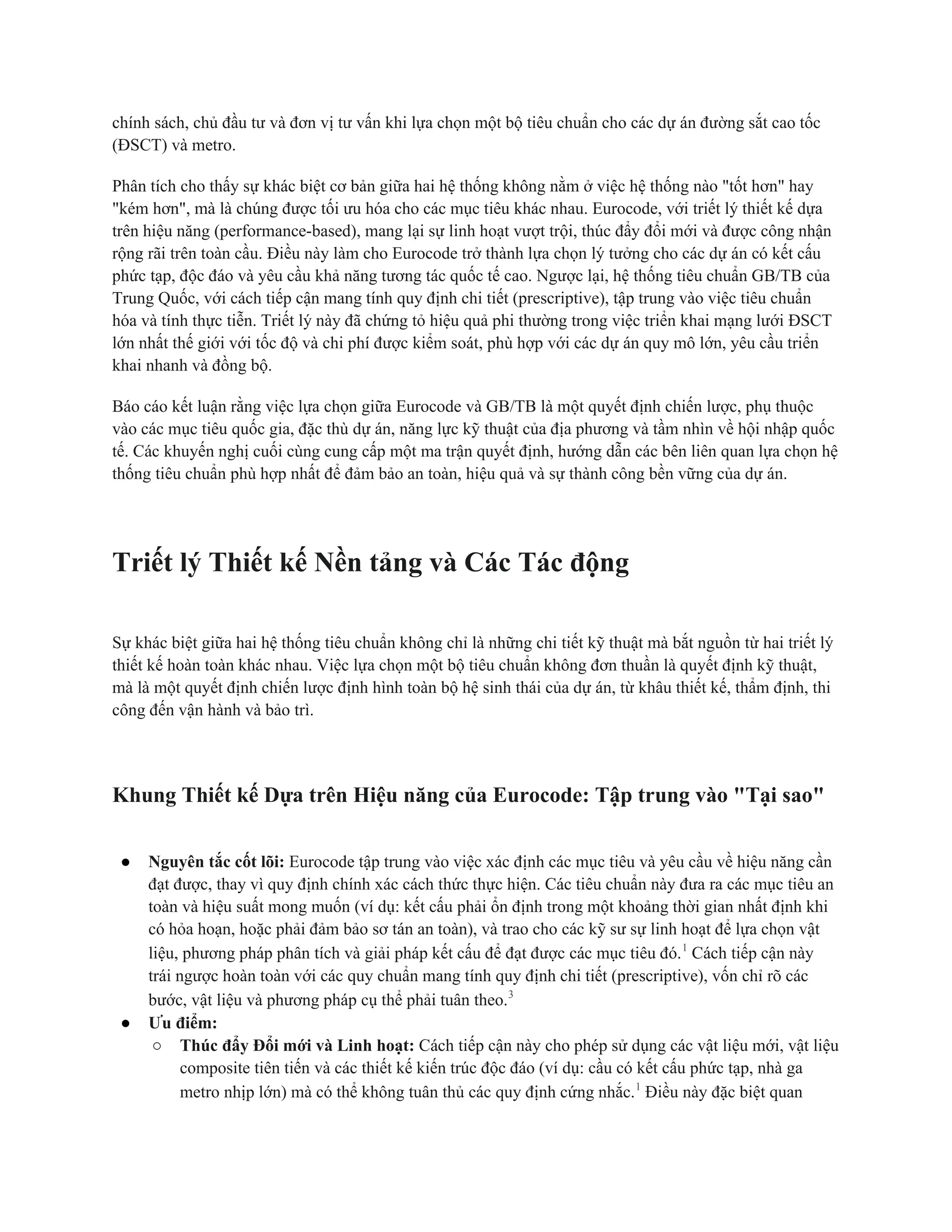 Báo cáo kết luận rằng việc lựa chọn giữa Eurocode và GB/TB là một quyết định chiến lược, phụ thuộc
