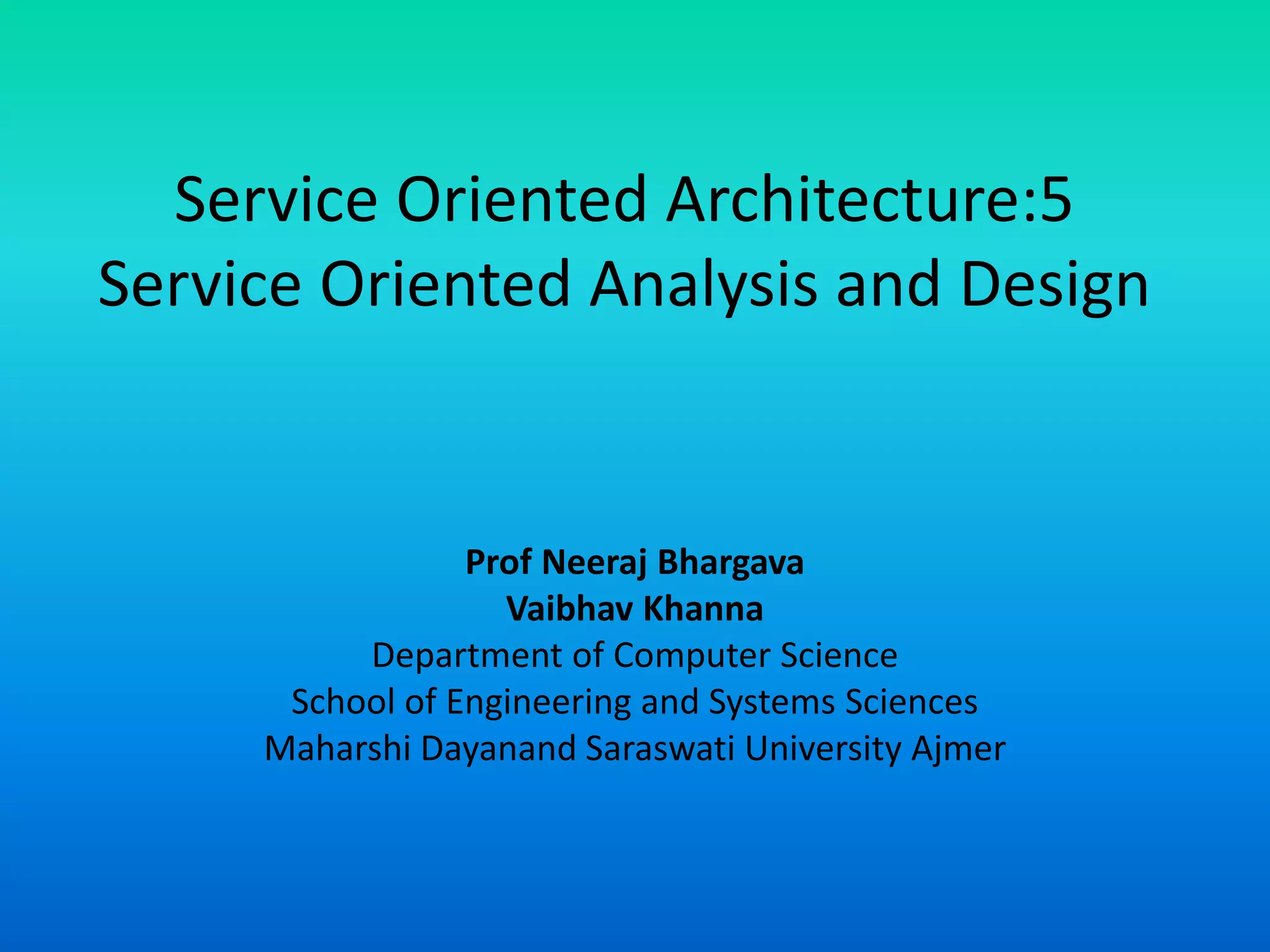 Service Oriented Architecture:5 describes key concepts in service oriented analysis and design including: