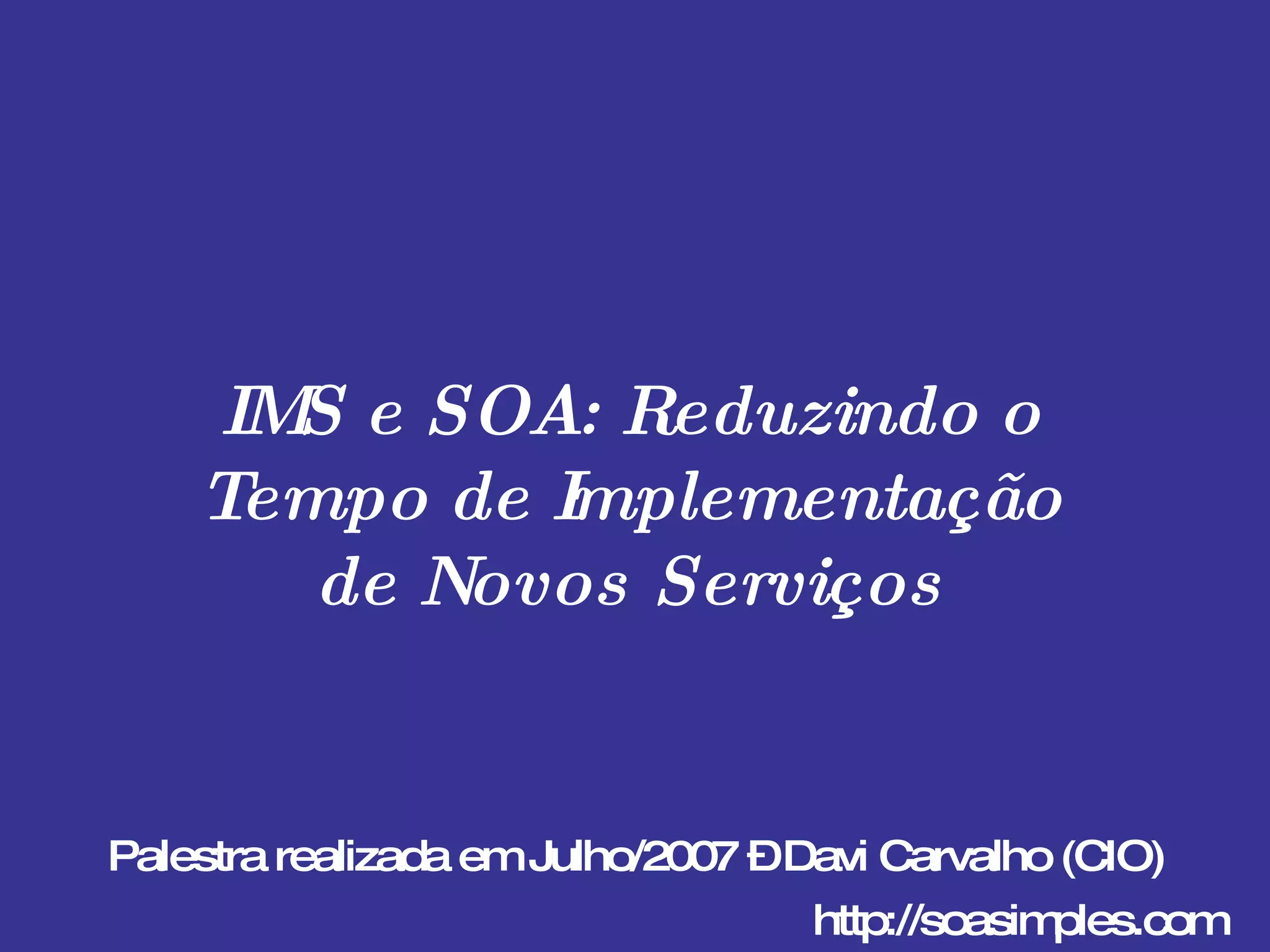 The document discusses how IMS (IP Multimedia Subsystem) and SOA (Service-Oriented Architecture) can help reduce the time needed to implement new services. IMS provides an open standard architecture for converged multi-media services across networks. SOA allows applications and services to be built in a modular way and connected through published interfaces, improving flexibility and integration. Combining IMS with SOA principles like loose coupling, reuse, and abstraction allows services to be deployed more quickly.