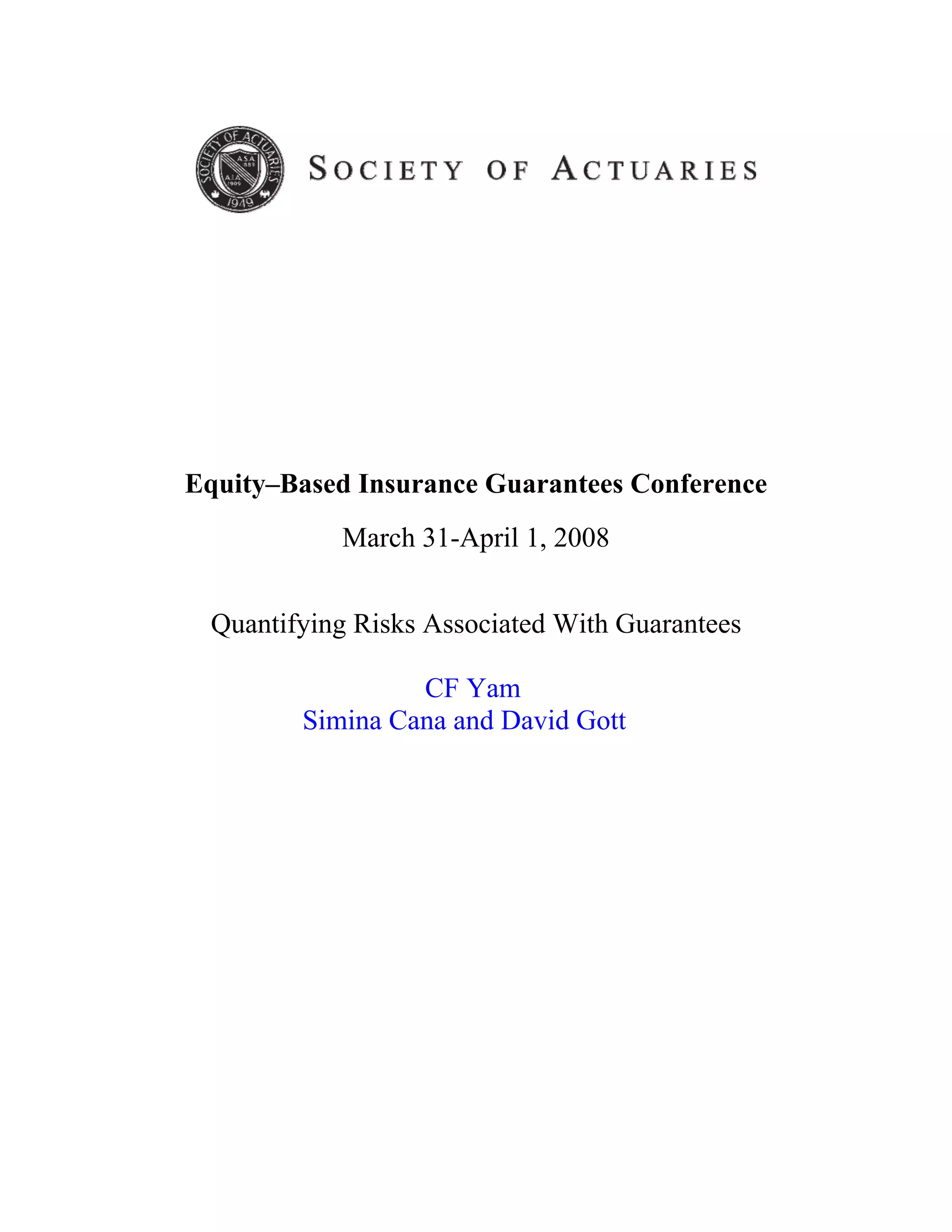 This document discusses quantifying risks associated with equity-based guarantees. It covers: