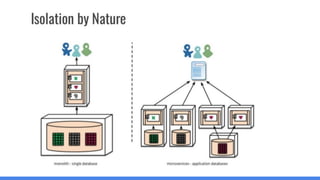 This document discusses Service Oriented Architecture (SOA) and related concepts like APIs and microservices. It provides an overview of SOA and notes its focus on services, abstraction, interoperability, and flexibility. APIs are discussed as being focused on REST and JSON for external use cases, while microservices emphasize isolation, anti-fragility, and scalability but at the cost of infrastructure complexity. The document poses exercises around designing a banking system using SOA modeling and architecture.