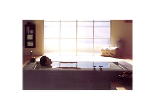 3. Finally, it includes an example presentation about the design process for a bathtub that recycles and filters water to create a soothing waterfall effect while keeping the bath warm.