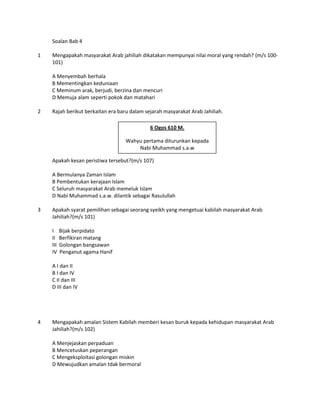 1. Masyarakat Arab Jahiliah memiliki nilai moral yang rendah karena meminum arak, berjudi, berzina dan mencuri.