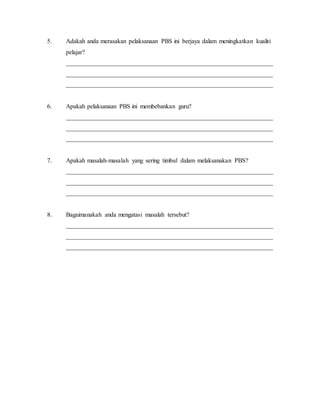 6. Pengalaman mengajar menggunakan kaedah PBS:__________________________