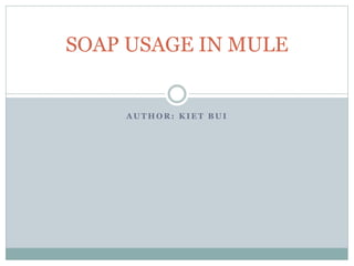 The document discusses using a schema validation filter in Mule to validate SOAP requests against an XSD schema file. The schema validation filter is added to the flow after the SOAP service. If the request is invalid, it will be routed to a subflow that throws a custom error message. This allows validating SOAP requests by referring the request to the schema definitions.