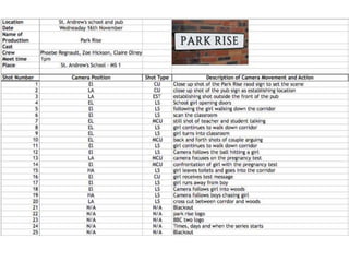 Claire Olney is a candidate with number 1186 from St. Andrew's Catholic School with center number 64135. Her soap opera genre project includes a shot list.
