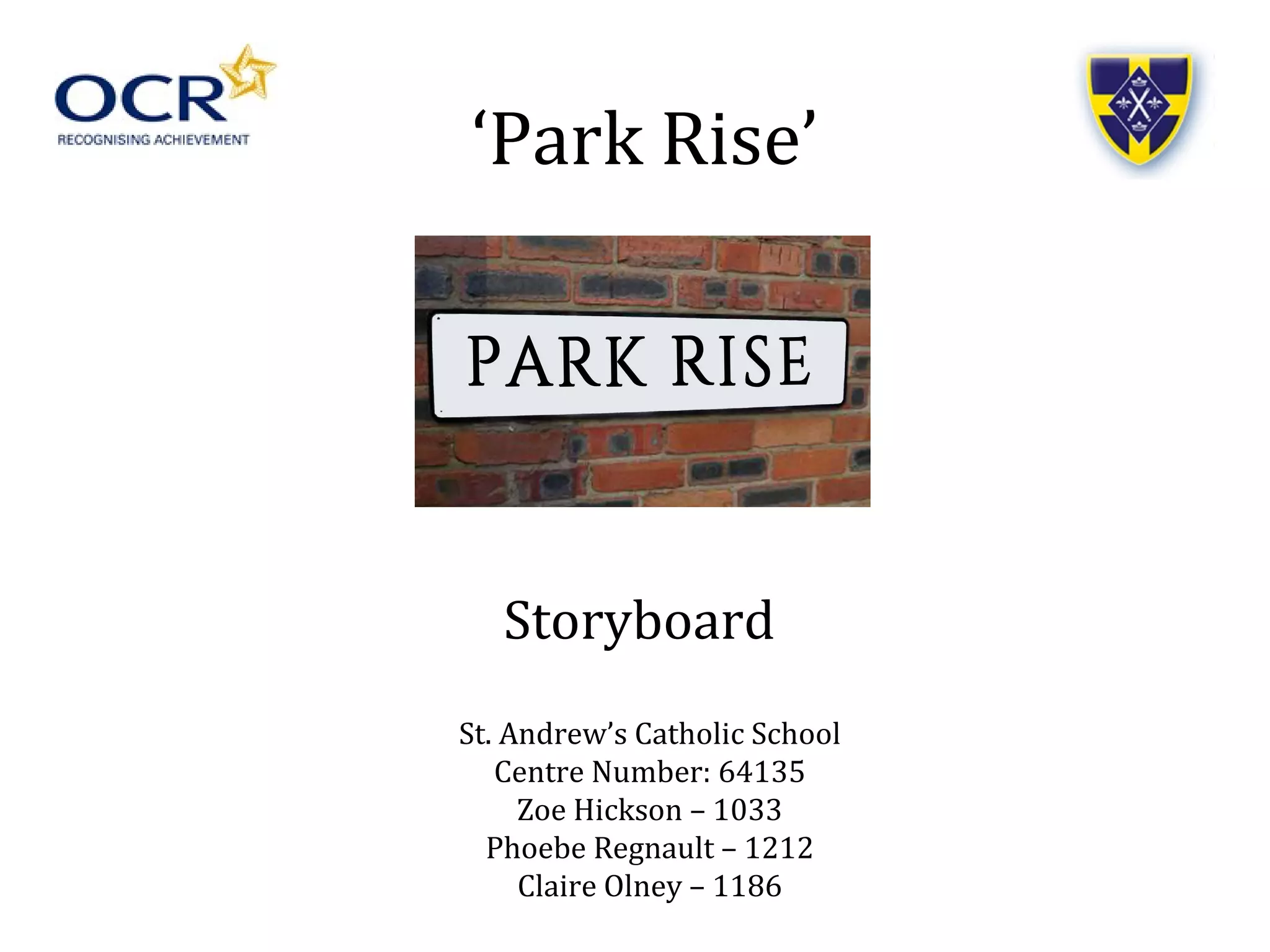 The storyboard is for a soap opera titled "Park Rise" and consists of 25 shots. It begins by introducing the main character, a school girl, through various shots that follow her through the school setting her journey. Various issues are represented through flashbacks including teacher-student relationships, domestic violence, pregnancy and friendship issues. Tension is built as the girl is confronted and receives threatening texts. She is later chased through the woods by boys before the storyboard ends by promoting the new series.