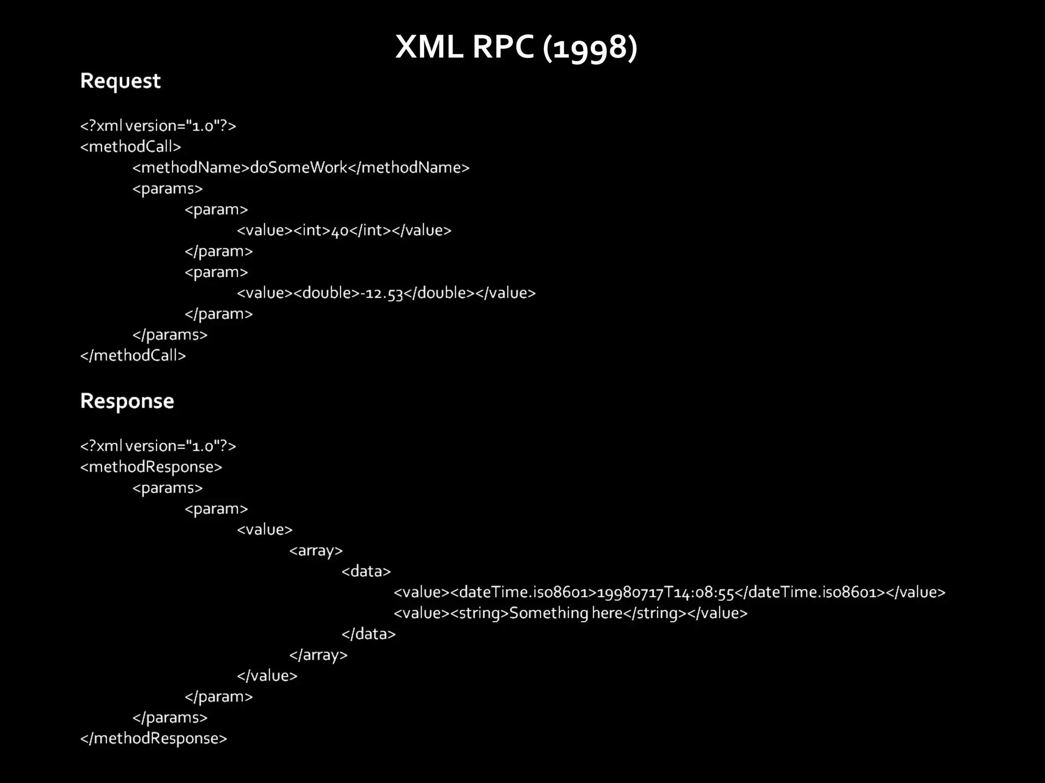 This document discusses the evolution of SOAP standards and styles from 1998 to 2005. It begins with early implementations of XML-RPC and SOAP with section 5 encoding. It then covers various SOAP styles including document/literal, RPC/literal, and wrapped/literal. The document provides summaries of each style and their advantages or disadvantages. It also discusses related standards like WSDL and WS-*. In conclusion, it recommends using SOAP for enterprise apps by default but considering REST for broad audiences without network constraints.