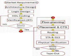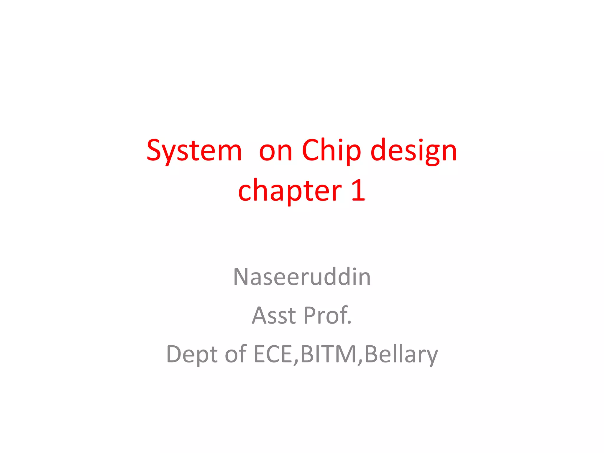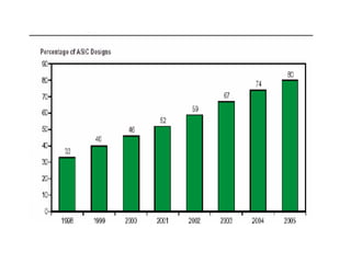 System on Chip (SoC) design aims to integrate heterogeneous components like processors, memory, analog circuits onto a single chip to achieve benefits like lower cost, power consumption, and physical size. Moore's law has allowed increasing transistor counts on chips over decades. Early SoCs integrated thousands of gates while modern ones integrate millions of transistors. Challenges include meeting time-to-market demands and managing increasing design complexity and verification requirements. Solutions involve raising the design process to higher abstraction levels, reusing pre-verified intellectual property blocks from different vendors to simplify verification.