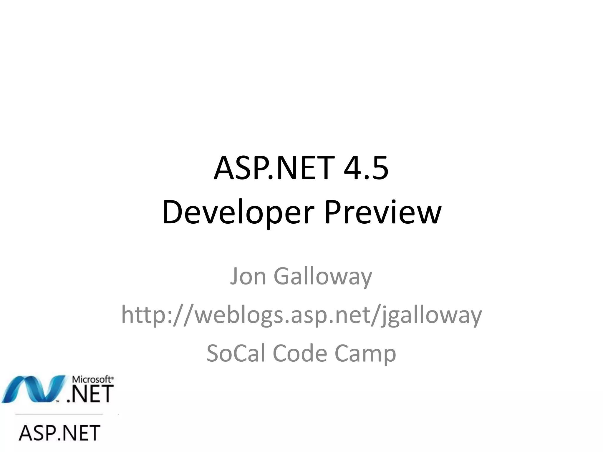 This document summarizes the agenda for a presentation on ASP.NET 4.5. The presentation focuses on improvements to ASP.NET Web Forms like strongly typed data binding and attributed models. It also discusses common features across ASP.NET like asynchronous processing. The document provides examples of using new HTML5 form features and model-view-controller patterns in ASP.NET MVC. It directs readers to online resources for additional information.