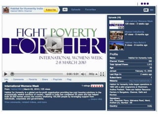 This document provides an overview of social media and how organizations can utilize various social media platforms. It defines social media as being based on social networking and crowd-sourcing, with a foundation of interactivity and accessibility. Various social media platforms are described, including online video sharing sites like YouTube that skew towards older demographics, photo sharing sites like Flickr that are popular among females ages 25-54, and social networking sites like Facebook and Twitter that also have large user bases in older age groups. The document encourages organizations to use social media as marketing channels, for customer service, and to build relationships, and outlines the "5 Ls" approach to properly using social media.