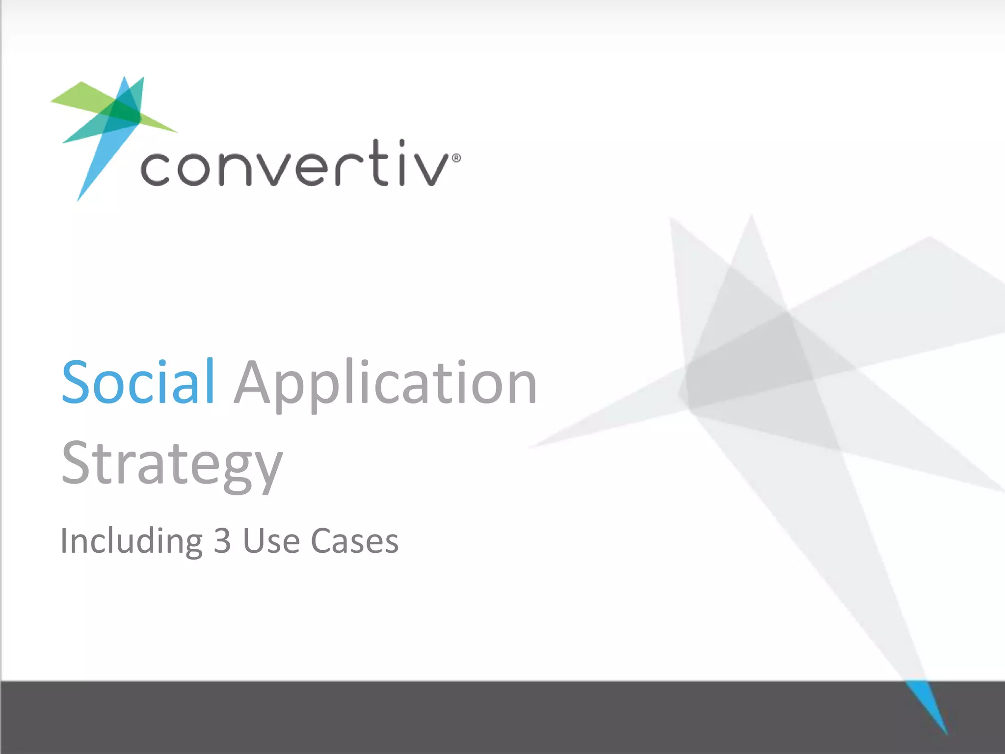 The document outlines a social application strategy focused on creating interactive experiences that integrate physical and digital realms, enhancing consumer engagement through user-generated content and social media. It includes a step-by-step approach to campaign development, audience targeting, and performance analysis, illustrated with case studies demonstrating successful implementations. Key components involve a mix of strategies such as contests, influencer outreach, and analytics to optimize engagement and fan base growth.