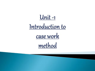 This document provides an overview of casework in social work. It defines casework as a method used by social workers to help solve individuals' problems and improve their social relationships. The document outlines key concepts like the importance of the relationship between the social worker and client. It discusses the objectives, values and assumptions of casework. Current trends highlighted include greater emphasis on research and awareness of the social worker's contribution to human welfare. The conclusion states that casework has become an important tool in social work for dealing with individuals.
