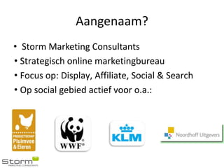 De communities herbergen namelijk een schat aan gebruikersinformatie. De gebruikersinformatie is goed te gebruiken in het formuleren van bijvoorbeeld personas om gerichter de marketingactiviteiten in te richten. StormMC laat zien hoe deze data uit de verschillende kanalen getrokken kan worden en hoe deze toe te passen is. De presentatie zal worden verzorgd door Sander Hof (social media specialist) & Sander Prinsen (directeur) van StormMC.