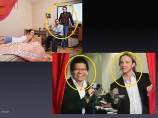 This document discusses principles for designing massively multiplayer social systems. It covers different models of social networks like those centered around sharing objects, viral sharing of content, and tag-based sharing. It also discusses factors like individuals, groups, popularity, and how to design for personal usefulness, porous boundaries between public and private sharing, levels of participation, and adding elements of serendipity, independence, and expertise. The document concludes with nine principles for designing social systems, such as making them personally useful and symbiotically linking personal and social aspects, while also allowing for play.