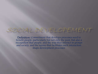 This document discusses the impact of media like television and computers on social learning and development in children and adolescents. It notes that television exposure is universal, with most homes having at least one TV, and time spent watching being similar across developed and developing nations. While educational TV can be beneficial, commercial content often contains stereotypes and promotes aggression and consumerism. Computer games also commonly emphasize violence and role-playing aggression. The internet allows teens to socialize through instant messaging but can expose them to risks when meeting strangers online. Social intelligence involves understanding oneself and others through social skills, interactions, and perspective-taking abilities. It differs from general intelligence and can be measured through tests, with higher scores relating to stronger interpersonal skills.
