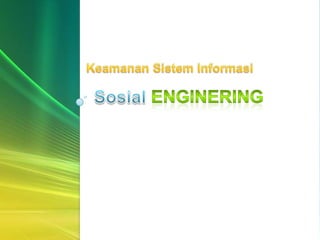 Dokumen ini membahas teknik social engineering yang dibagi menjadi dua jenis: berbasis interaksi sosial dan berbasis interaksi komputer, dengan berbagai skenario penipuan contoh. Penipuan ini menargetkan individu di perusahaan, seperti receptionist dan karyawan baru, serta menawarkan solusi untuk menghindari risiko seperti pelatihan keamanan dan audit berkala. Penekanan pada kewaspadaan dan prosedur keamanan informasi juga ditekankan dalam dokumen ini.