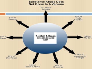 This document discusses social issues related to HIV/AIDS, drug abuse, and alcoholism. It notes that HIV/AIDS has had devastating demographic, health, economic, and social impacts. Over 25 million people had died from HIV/AIDS by 2005 and it remains a leading cause of death worldwide. Drug and alcohol abuse can also negatively impact families, health, economics, and lead to higher rates of crime and accidents. Addressing social issues requires efforts from governments, organizations, and raising public awareness.