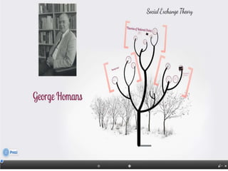 - The theory was introduced by George Homans in 1958 and views human relationships as formed through subjective evaluations of alternatives based on costs and benefits. It has been expanded on by other sociologists like Frazer, Malinowski, and Homans himself.