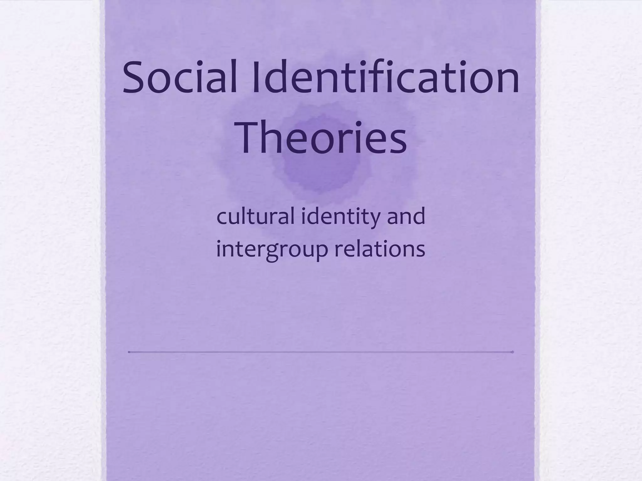 This document summarizes theories related to social identification, cultural identity, acculturation, and intergroup relations. Some key points:
